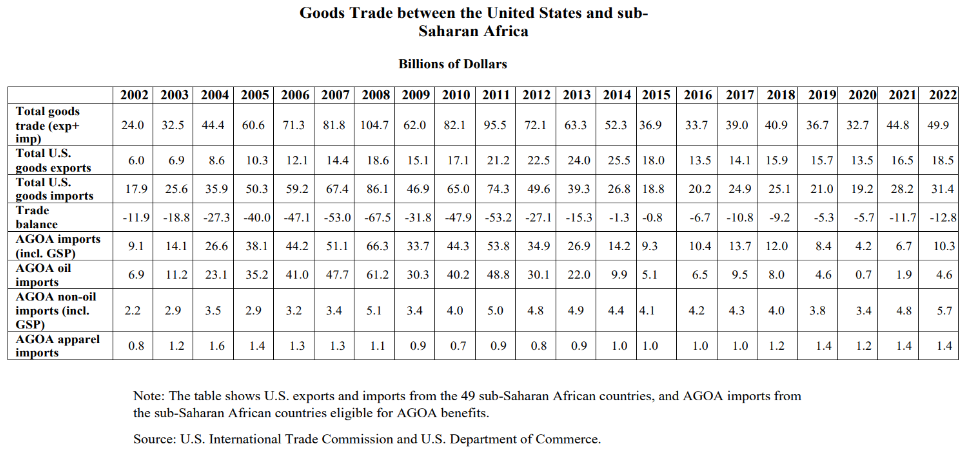 Over the past two decades, trade in goods between the United States and sub-Saharan Africa has witnessed significant growth and evolution. From 2001 to 2022, this trade relationship has played a pivotal role in fostering economic cooperation, promoting development, and strengthening bilateral ties between the two regions.
